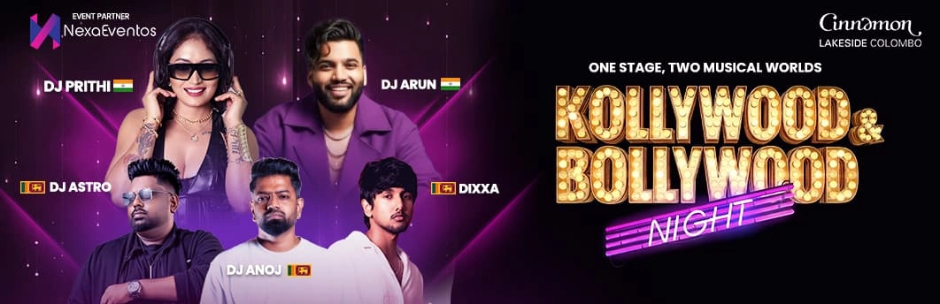 Kollywood & Bollywood Night (Tamil & Hindi Edition) unites two iconic musical cultures on one vibrant stage for a premium nightlife experience at Imperial Court, Cinnamon Lakeside Colombo.